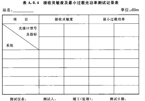 A.0.4接收靈敏度及最小過載光功率測(cè)試記錄可按表A.0.4選用。