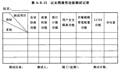 A.0.12以太網(wǎng)透?jìng)鞴δ軠y(cè)試記錄可按表A.0.12選用。