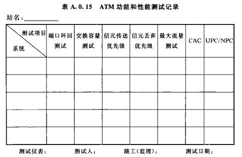 A.0.15ATM功能和性能測(cè)試記錄可按表A.0.15選用。