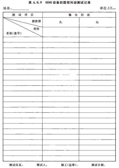 A.0.9SDH設(shè)備的固有抖動(dòng)測(cè)試記錄可按表A.0.9選用。