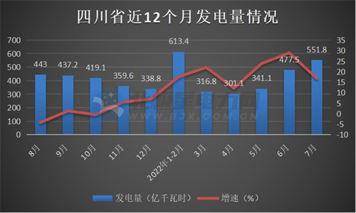 7月份,總發(fā)電量551.8億千瓦時(shí),同比增長(zhǎng)16.8%;其中,火電發(fā)電量73.5億千瓦時(shí),同比增長(zhǎng)44.7%;水力發(fā)電量468.5億千瓦時(shí),同比增長(zhǎng)13.2%;風(fēng)力發(fā)電量7.6億千瓦時(shí),同比增長(zhǎng)37.6%;太陽(yáng)能發(fā)電量2.13億千瓦時(shí),同比減少6.1%。