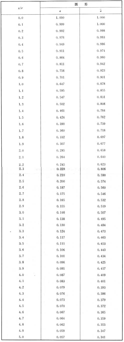 表C.0.3 圓形面積上均布荷載作用下中點的附加應力系數(shù)α與平均附加應力系數(shù)α