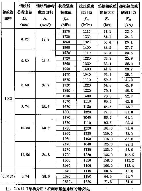 fptk、fpy——鋼絞線和熱處理鋼筋的抗拉強(qiáng)度標(biāo)準(zhǔn)值、設(shè)計(jì)值;
