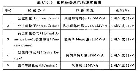 C.0.3郵輪碼頭岸電系統(tǒng)實(shí)錄可按表C.0.3確定.