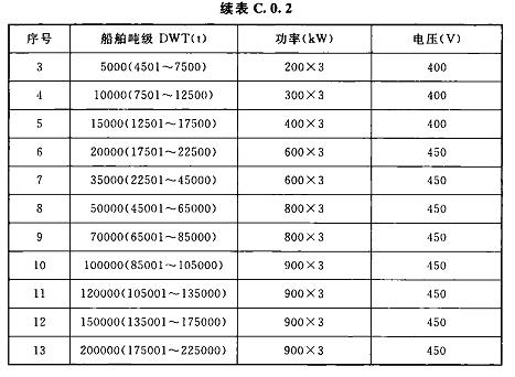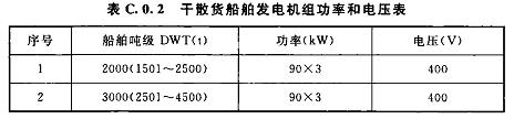 C.0.2干散貨船舶發(fā)電機(jī)組功率和電壓可按表C.0.2確定。