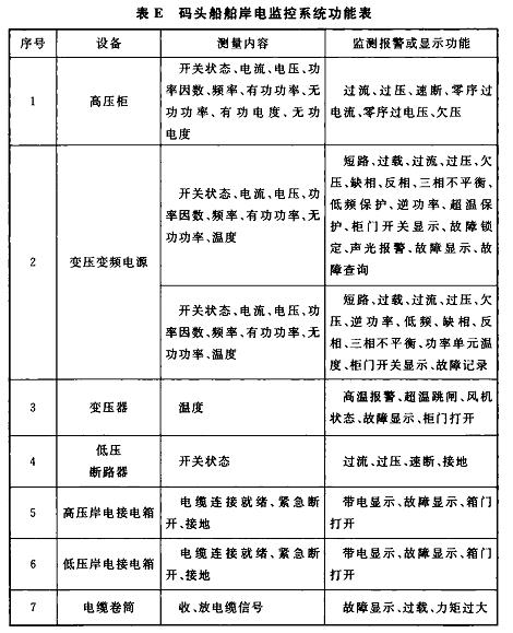 附錄E碼頭船舶岸電監(jiān)控系統(tǒng)功能