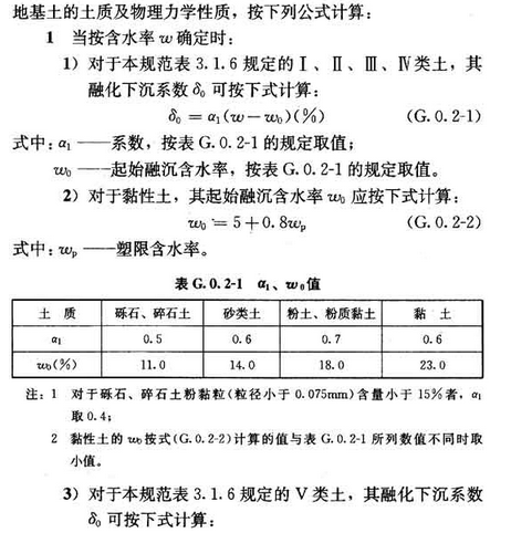 G.0.2 凍土融化下乘系數(shù)δ0,當(dāng)沒有試驗資料時,可依據(jù)凍結(jié)