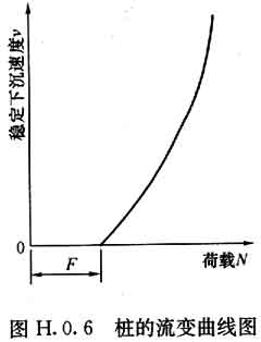 2 快速加載時,找出每級荷載下樁的穩(wěn)定下沉速度(即穩(wěn)定蠕變速率),并繪制樁的流變曲線圖(圖H.0.6),曲線延長線與橫坐標(biāo)的交點應(yīng)作為樁的極限承載力;