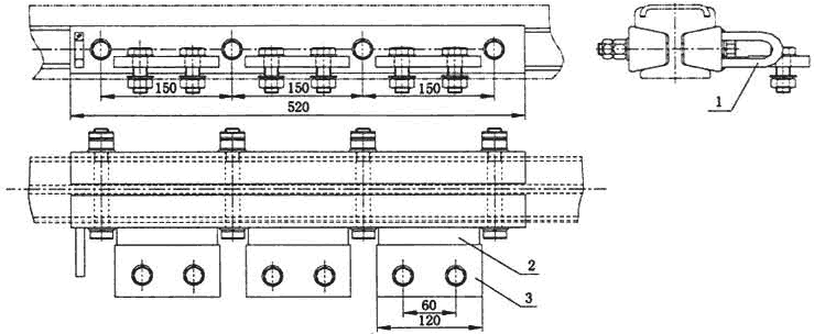 說明:1——接地掛環(huán);2——鋁板;3——T2銅排