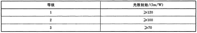 LED路燈顯色指數(shù)應(yīng)大于70,光效初始值等級(jí)應(yīng)符合表2的規(guī)定,色溫分級(jí)應(yīng)符合表3的規(guī)定,色品坐標(biāo)應(yīng)符合表4的規(guī)定。