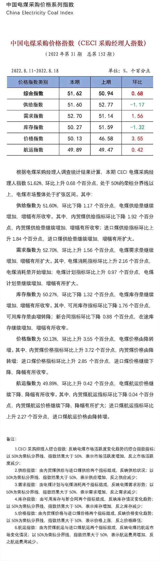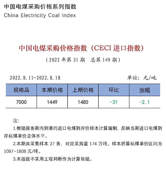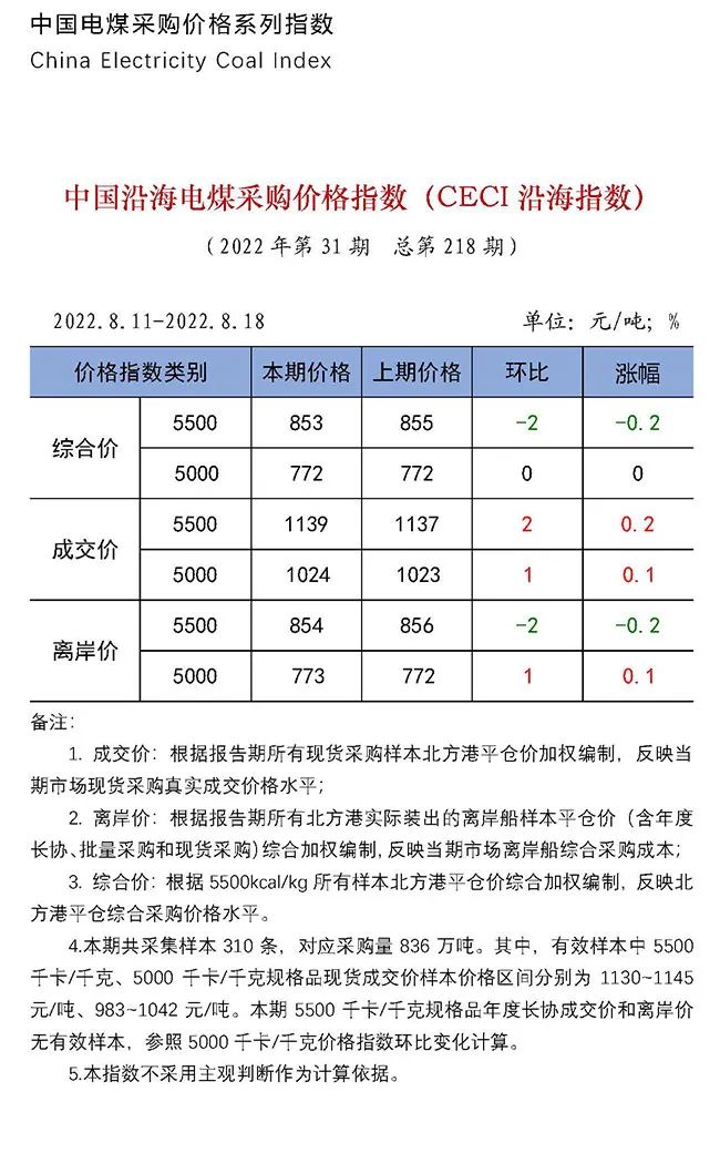 2022年|中國電煤采購價(jià)格CECI系列指數(shù)(2022年8月11日-8月18日)