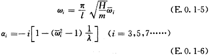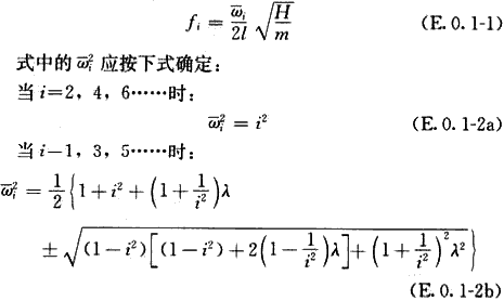 按式(E. 0. 1-2)計(jì)算ωi時(shí),將出現(xiàn)兩個(gè)頻率解,當(dāng)該對(duì)稱(chēng)振型的兩個(gè)頻率解均在前后兩個(gè)反對(duì)稱(chēng)振型頻率之間時(shí),該對(duì)稱(chēng)振型的兩個(gè)頻率解均為真實(shí)解,否則只有一個(gè)真實(shí)解。