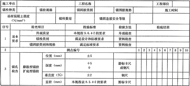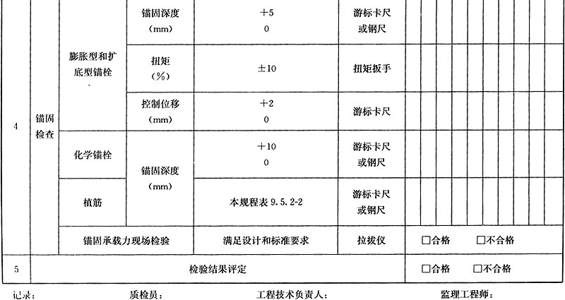 附錄D 后錨固工程質(zhì)量檢查記錄表
