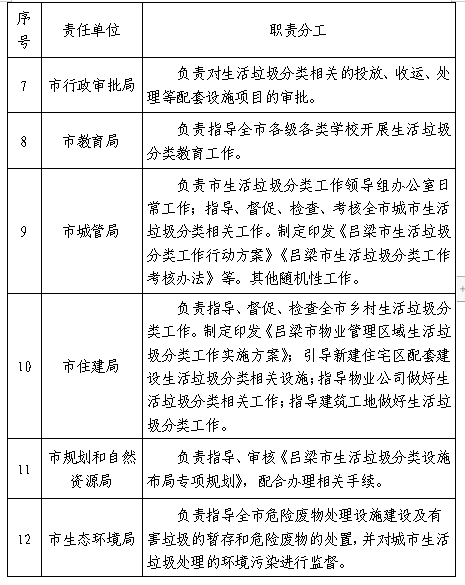 2.呂梁市生活垃圾分類工作職責(zé)分工表