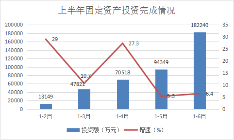 上半年,全縣固定資產(chǎn)投資完成18.2億元,占全市投資額的6.7%,同比增長(zhǎng)6.4%。總量在全市13個(gè)縣市區(qū)中排名第六,增速排名第九,高于全市(3.3%)3.1個(gè)百分點(diǎn),高于全?。?.4%)1個(gè)百分點(diǎn)。