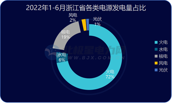 1-6月,浙江省總發(fā)電量1881.8億千瓦時,同比增長0%;其中,火電發(fā)電量1356.7億千瓦時,同比減少4.2%;水力發(fā)電量101.3億千瓦時,同比增長29.8%;風(fēng)力發(fā)電量37.7億千瓦時,同比增長115.8%;太陽能發(fā)電量24.87億千瓦時,同比增長4.4%;核電發(fā)電量55.1億千瓦時,同比減少5.4%。