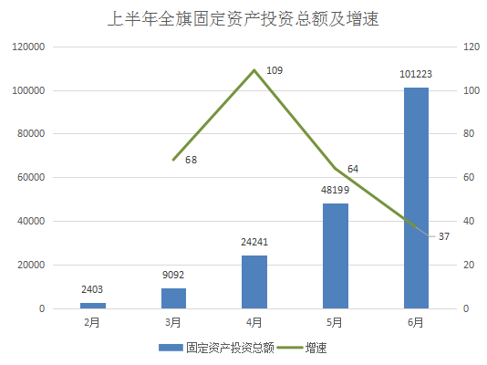 1—6月份,全旗完成固定資產(chǎn)投資10.12億元,同比增長37.0%,總量占全市投資總額的12.1%,增速高于全市6.1個百點分。資料共享_縣域經(jīng)濟_模版下載