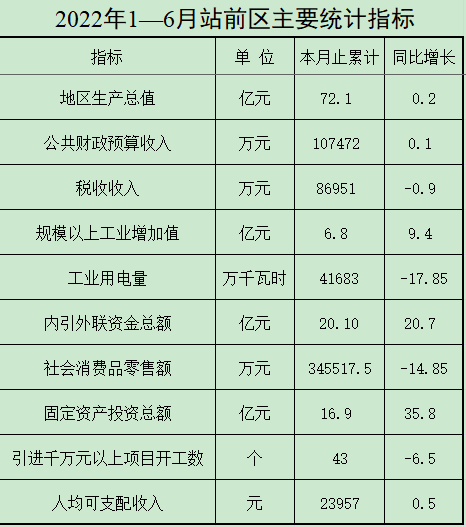 (營口市)站前區(qū)2022年1—6月主要統(tǒng)計(jì)指標(biāo)