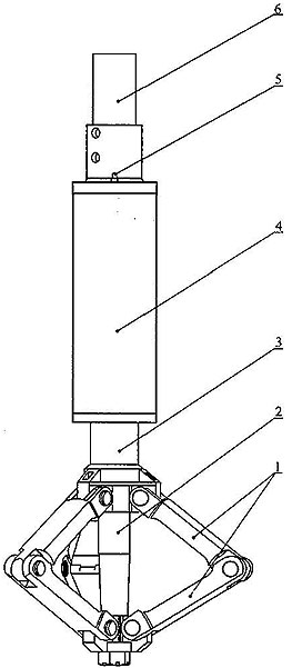 1—三岔擠擴(kuò)臂;2—內(nèi)活塞桿;3—外活塞桿;4—缸筒;5—油管;6—接長桿
