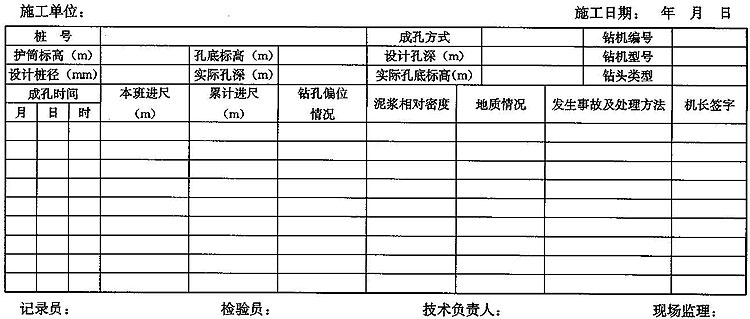 附錄H 三岔雙向擠擴(kuò)灌注樁成孔記錄表