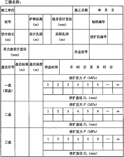 附錄J 三岔雙向擠擴(kuò)灌注樁擠擴(kuò)記錄表