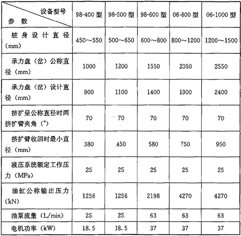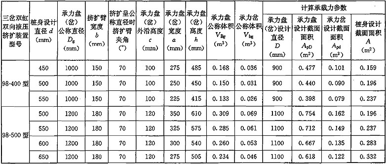 1 樁身直徑可選用450~1500mm,承力盤(岔)直徑應(yīng)根據(jù)樁身直徑、承載力要求和三岔雙缸雙向擠擴(kuò)裝置的類別及型號確定;