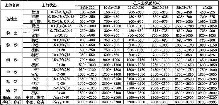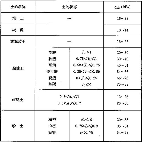 4 表中數(shù)值適用于老沉積土;對于新近沉積土,qsik應(yīng)按土的狀態(tài),降一級取值。