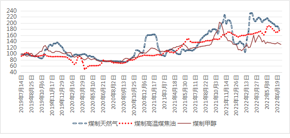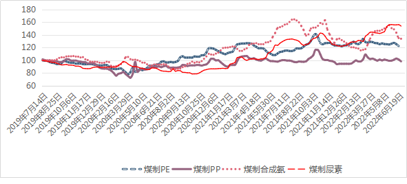 具體來看,截至6月26日,我區(qū)煤制天然氣、煤制高溫煤焦油、煤制PE、煤制PP、煤制甲醇、煤制合成氨、煤制尿素價格指數(shù)分別收于178.85點、175.35點、122.44點、98.25點、132.64點、133.93點、153.91點,與年初(1月2日)相比,漲幅較大的是煤制天然氣、煤制尿素,分別上漲34.09%、25.27%;漲幅較小的是煤制甲醇、煤制高溫煤焦油、煤制PP、煤制合成氨、煤制PE,分別上漲17.36%、13.42%、4.09%、3.41%、25.27%。