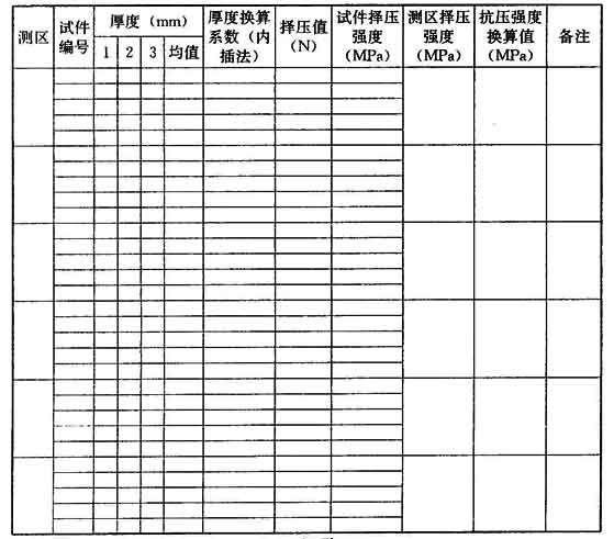 表C 擇壓法檢測砌筑砂漿抗壓強度報告
