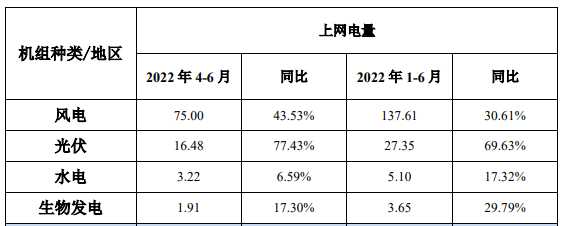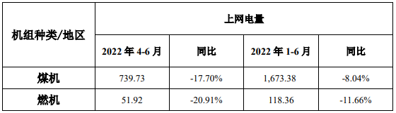 公司2022年上半年境內(nèi)上網(wǎng)電量(以億千瓦時(shí)計(jì))具體如下: