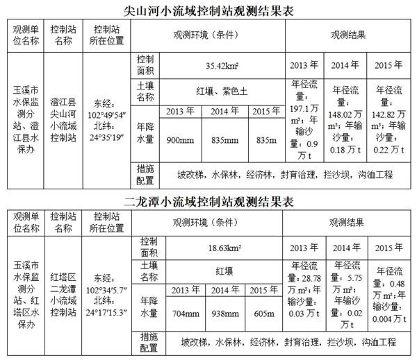 (1)小流域控制站觀測成果
