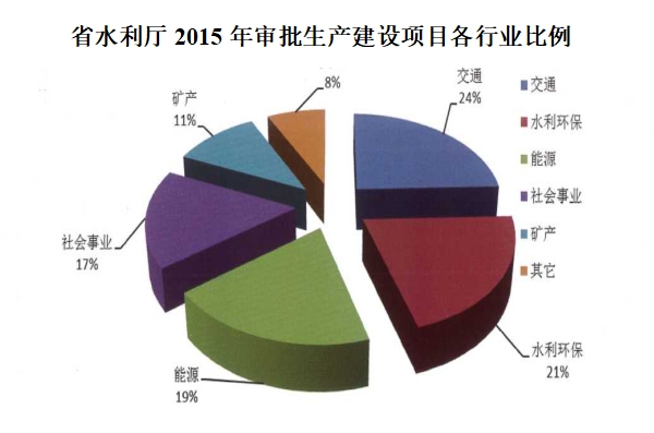 2015年省水利廳審批水土保持方案119個,其中:交通29個,水利環(huán)保25個,能原23個,社會事業(yè)20個,礦產(chǎn)資源13個,其它9個。