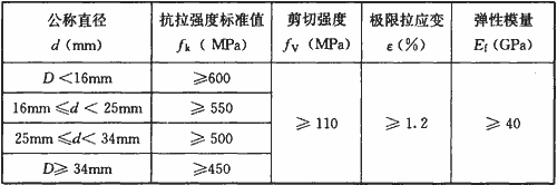 注:玻璃纖維筋抗拉強度標準值保證率在95%以上。