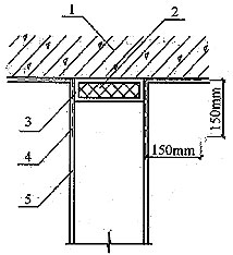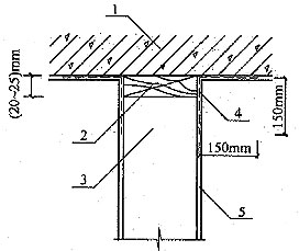 3—粘結石膏嵌縫抹平;4—粘貼耐堿玻璃纖維網(wǎng)布;5—裝飾面層