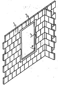 1—石膏砌塊砌體;2—洞口邊框;3—邊框寬度;4—邊框厚度