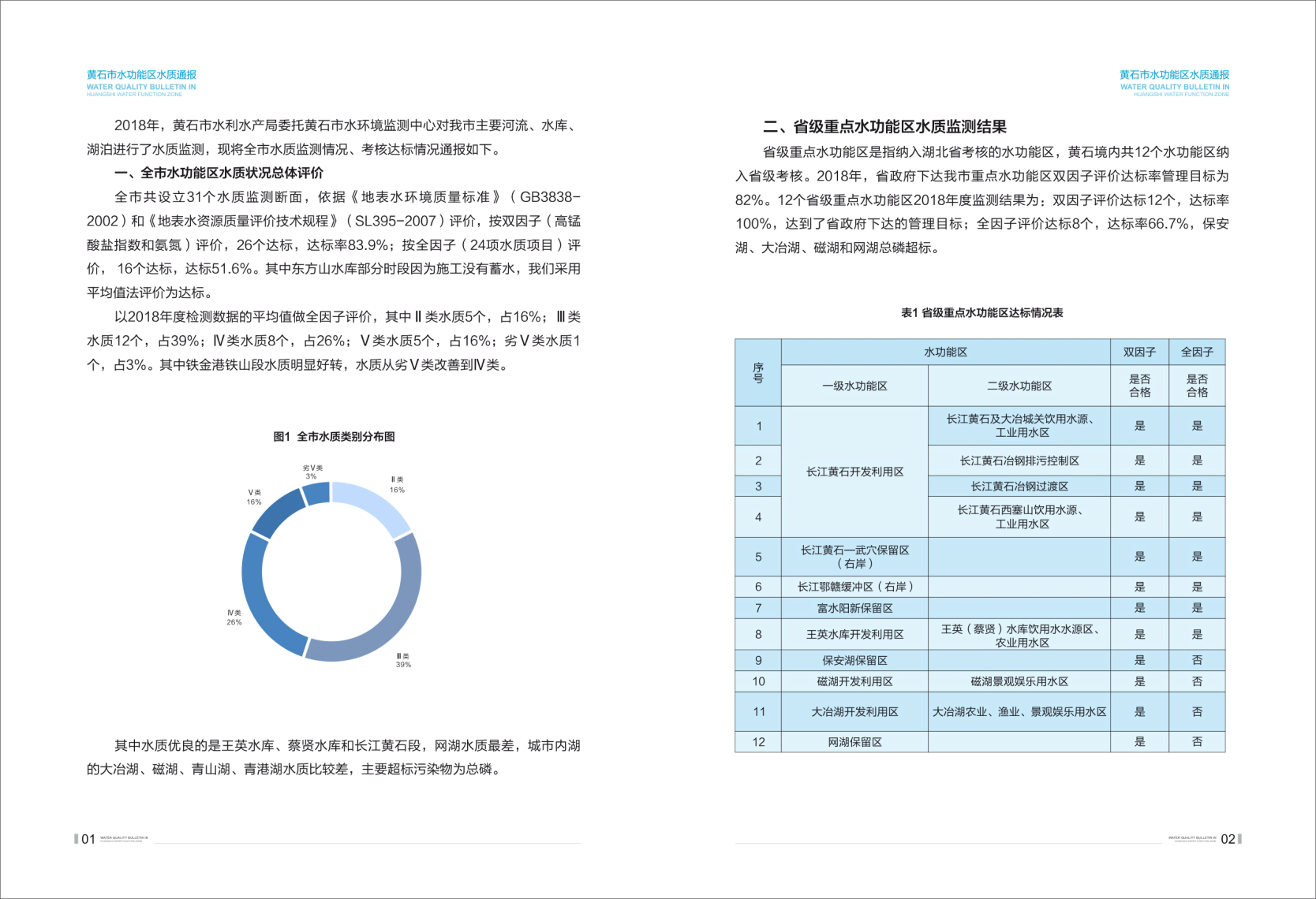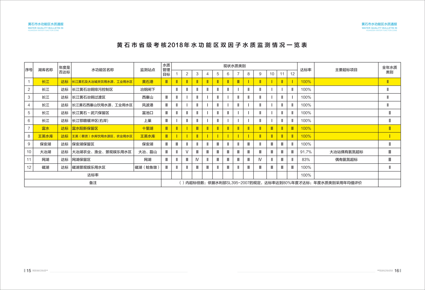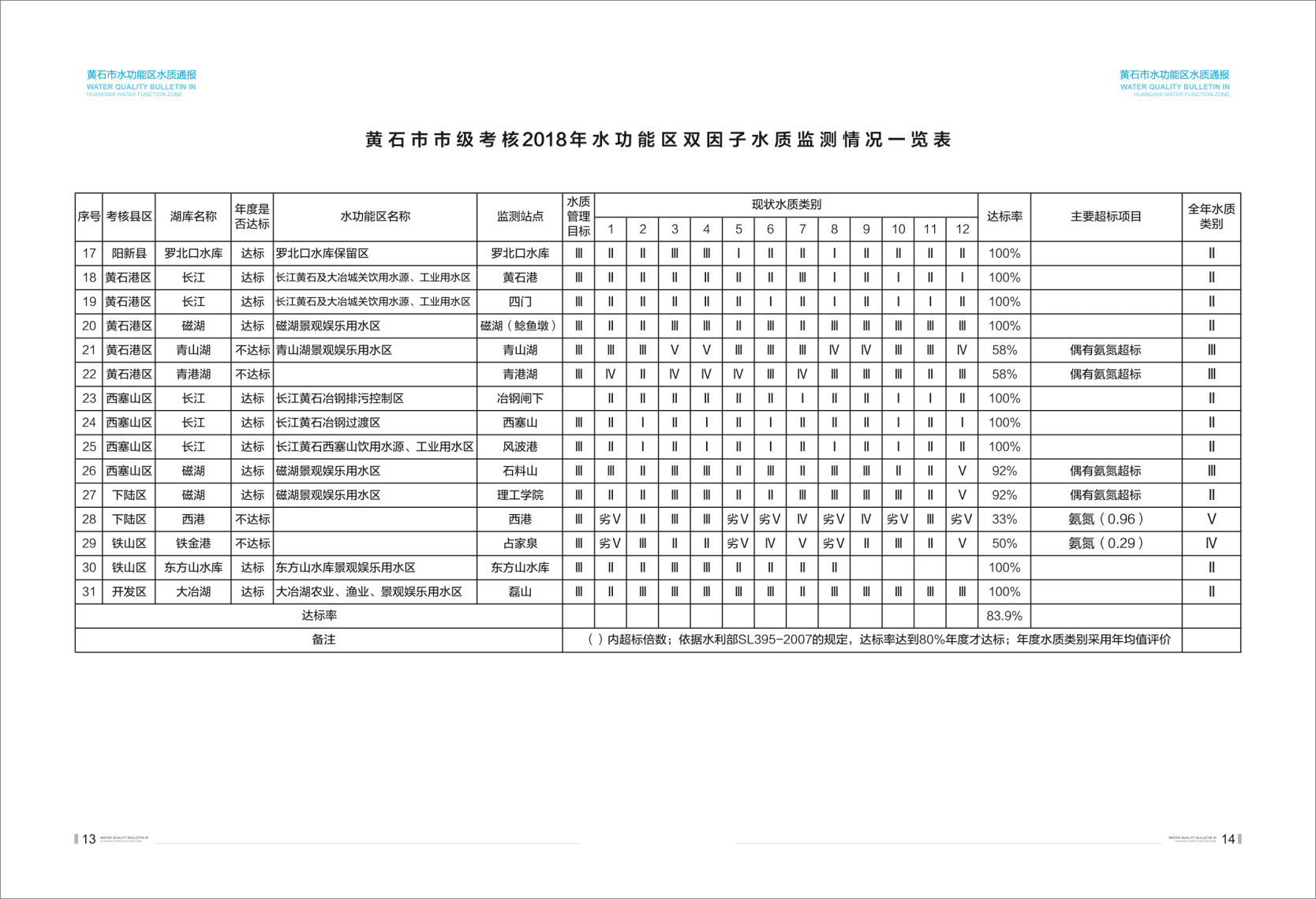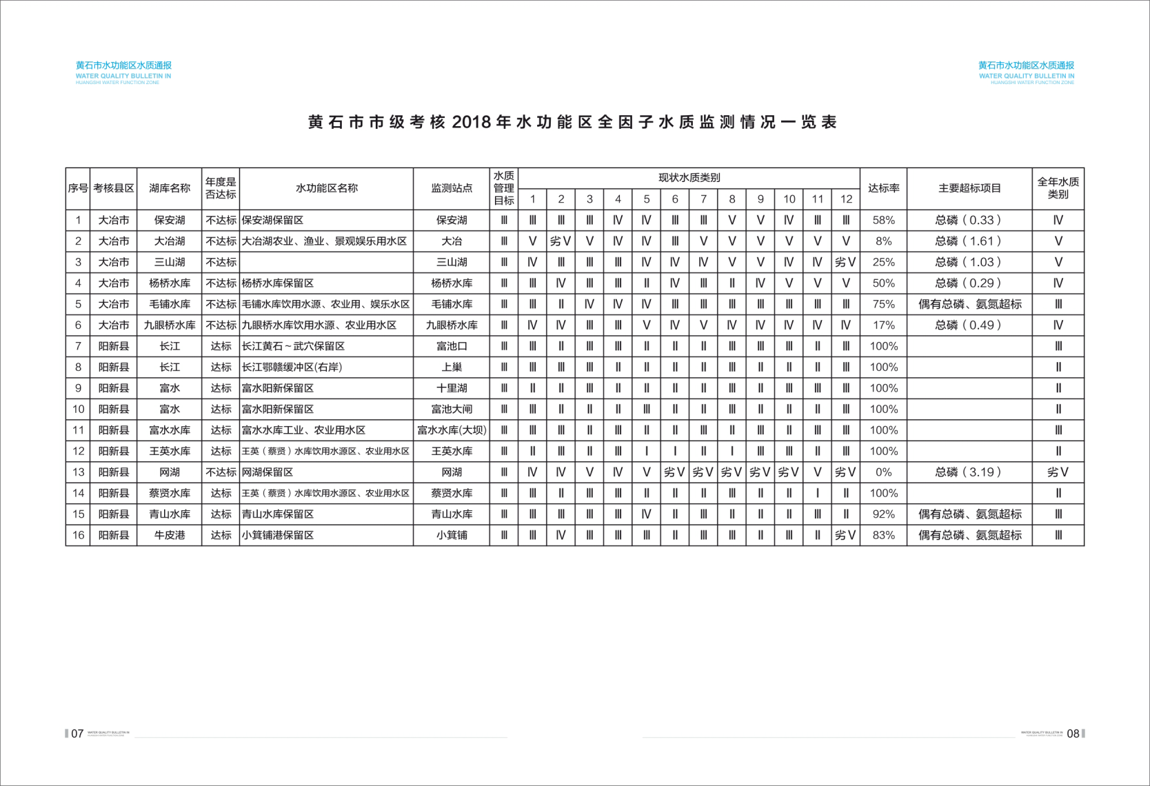 2018年黃石市水功能區(qū)水質(zhì)通報