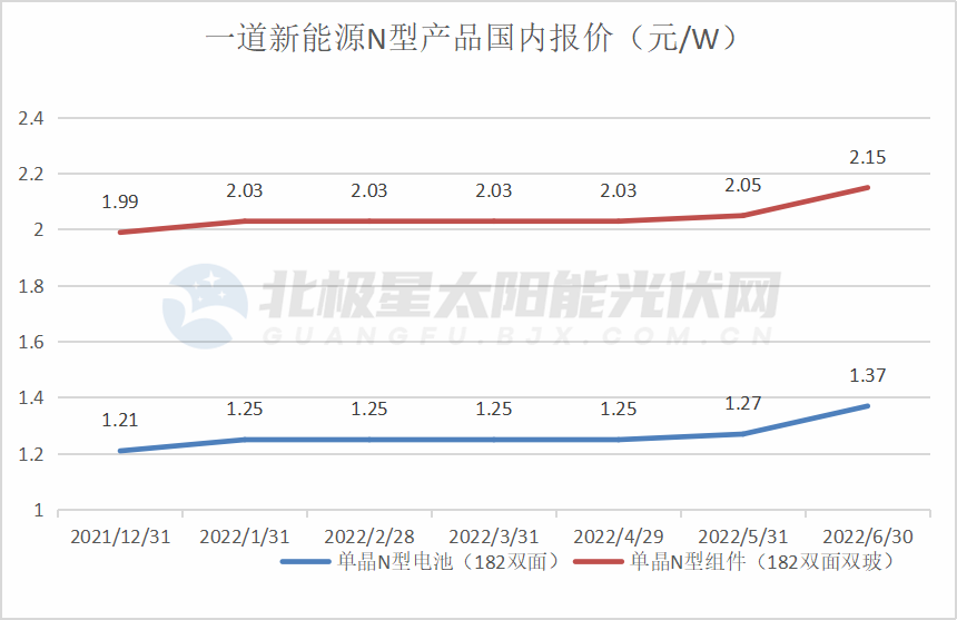 2022年一道新能N型產(chǎn)品價(jià)格走勢(shì)如下:
