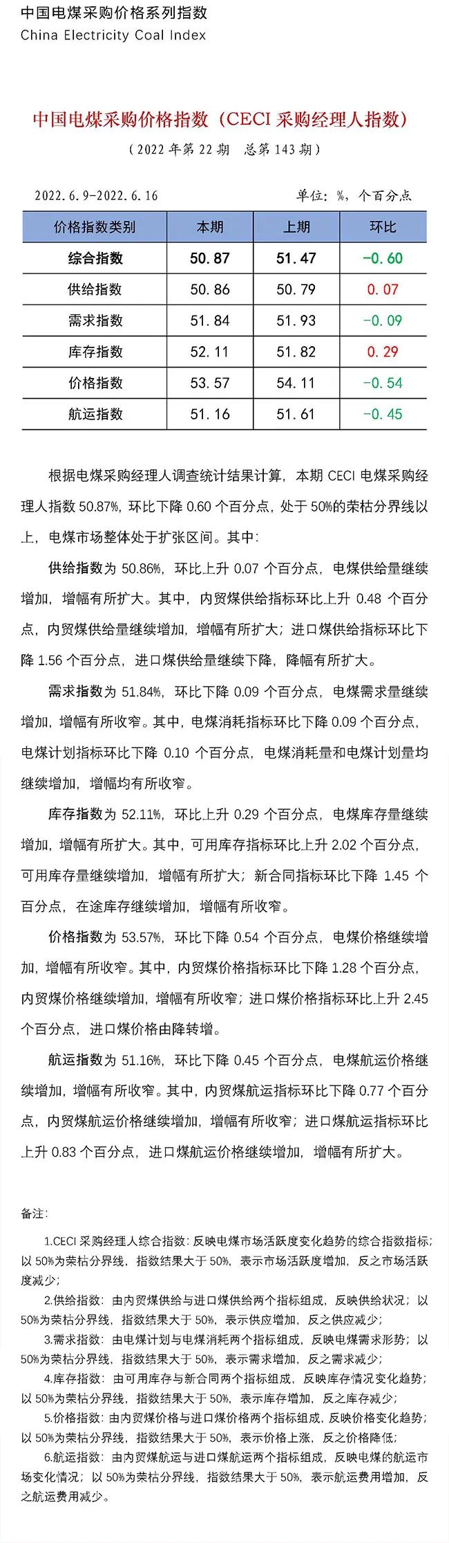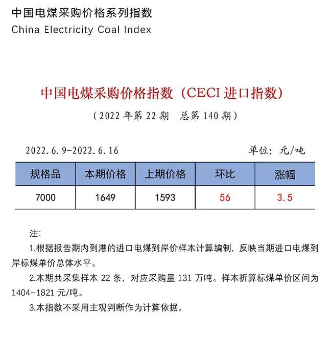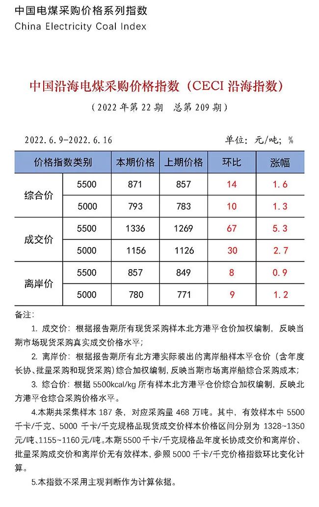 2022年|中國電煤采購價格CECI系列指數(shù)(2022年6月9日-6月17日)