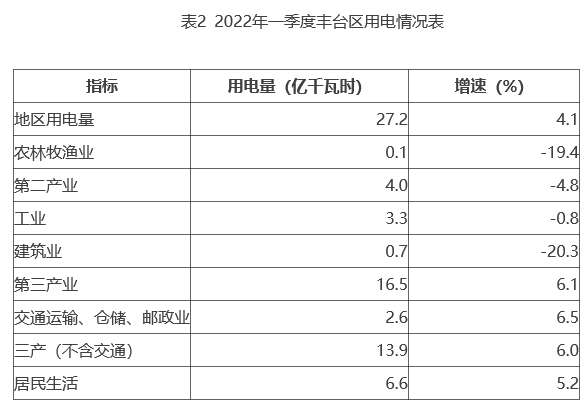 2022年|2022年一季度北京豐臺區(qū)用電量27.2億千瓦時 同比增加4.1%