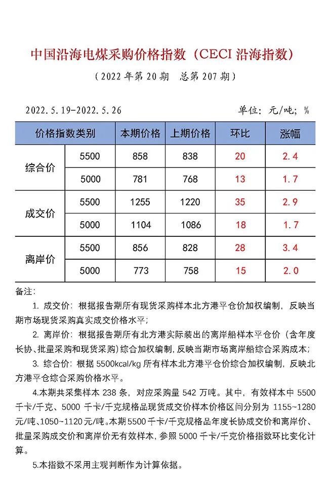 2022年|中國電煤采購價格CECI系列指數(shù)(2022年5月19日-5月26日)