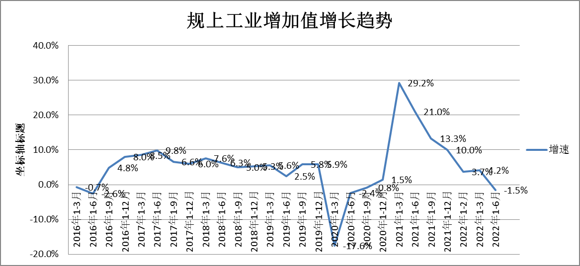 從增長(zhǎng)趨勢(shì)方面看,規(guī)上工業(yè)增加值增速總體處于中低速增長(zhǎng),由上年的高速增長(zhǎng)位置不斷下滑。(東莞市)東城街道2022年上半年經(jīng)濟(jì)運(yùn)行分析報(bào)告