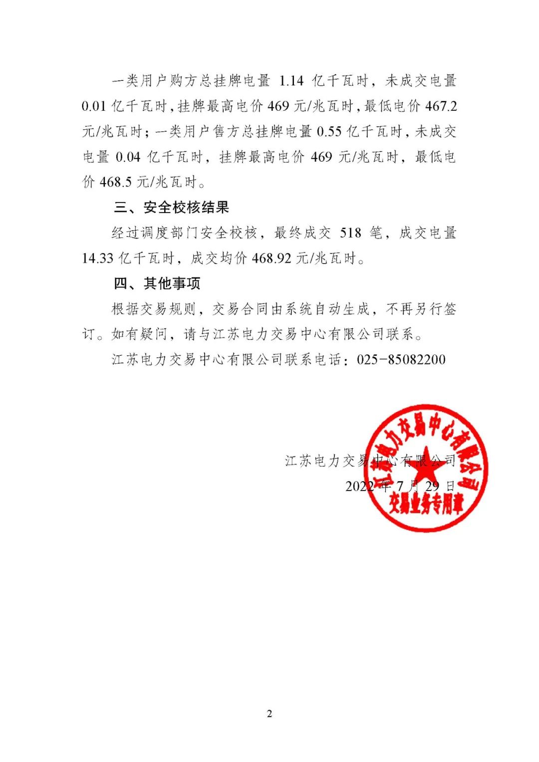 2022年|2022年7月下旬江蘇電力市場(chǎng)月內(nèi)掛牌交易結(jié)果公布:成交均價(jià)468.92元/兆瓦時(shí)